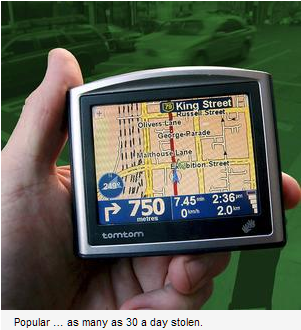 Anche in Australia occorre fare attenzione a non lasciare il proprio GPS in auto: da qualche tempo a questa parte i furti di tali apparecchiature in alcune zone hanno raggiunto numeri preoccupanti, racconta il quotidiano The Age .