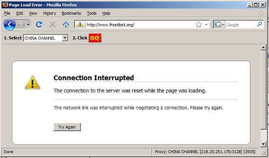Una ricerca relativa al massacro di Tienanmen o che contenga nella parole chiave Falun Gong risulterà molto probabilmente in una connessione interrotta , lo stesso vale per una ricerca con parola chiave democracy che termini su una pagina sgradita alle autorità. La connessione viene interrotta per qualche minuto: se il cittadino della rete cinese deve rassegnarsi ad attendere, gli utenti di China Channel possono ottenere immediatamente un nuovo indirizzo IP per continuare a sperimentare.