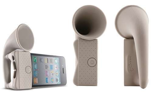 Duri di orecchio? C’è chi ha pensato di costruire un corno in silicone per amplificare il suono che esce dalla casse integrate di iPhone.
