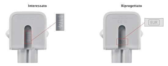 Tutti i dettagli sono disponibili nella pagina di supporto dedicata da Apple al programma , ma c’è un modo semplice per scoprire se il proprio alimentatore è tra quelli compresi nel richiamo: disassemblandolo e guardando nella fessura dove si incastra il resto del caricabatterie, se si leggono una serie di cifre o manca qualsiasi scritta occorre rivolgersi ad Apple tramite uno Store, un Centro di Assistenza o al supporto online per procedere alla sostituzione . Se invece nell’incavo è visibile una scritta di tre lettere (EUR, nel caso il prodotto sia stato venduto con la presa europea che si usa anche in Italia), non ci sarà bisogno di intraprendere alcuna azione.