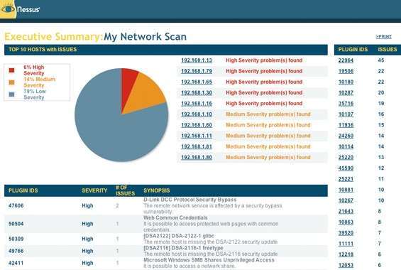 Altro tool del tutto simile a Nmap è Nessus . Il suo obiettivo è quello di rilevare potenziali vulnerabilità sui sistemi collaudati come “misconfiguration” (ovvero configurazioni di sicurezza mancanti) o password di default non modificate dagli utenti. E la sua affidabilità è dimostrata dal numero di organizzazioni che si affidano proprio a Nessus per testare la sicurezza delle proprie reti: stiamo parlando di circa 75.000 installazioni attive.