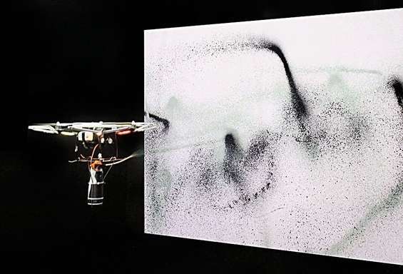 Katsu, graffittista USA, ha costruito nel 2015 il primo drone per graffiti, con cui ha imbrattato un gigantesco cartellone pubblicitario a New York
