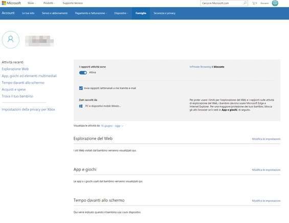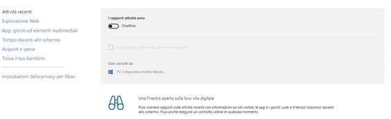 Questo sistema ci consente di monitorare da remoto le attività quotidiane di nostro figlio, verificare i siti che naviga, i suoi acquisti sul Windows Store e il tempo che trascorre davanti al computer.