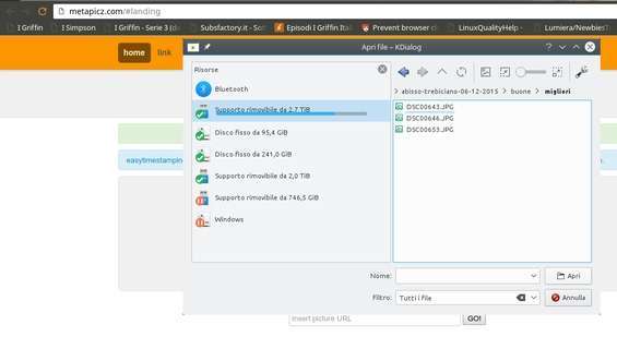 Per verificare quali metadati ci sono nelle nostre immagini possiamo sfruttare dei servizi gratuiti come Metapicz : basta caricare sul sito la fotografia o specificarne l’URL (se è già online). Ad esempio, possiamo aprire una nostra immagine in Facebook cliccarci sopra col tasto destro e scegliere Copia URL immagine .