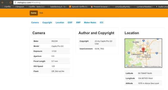 I primi dati EXIF che Metapicz presenta sono informazioni generiche sulla foto, come il modello della fotocamera, la risoluzione e l’orientamento (orizzontale o verticale). Tuttavia, la pagina è molto lunga: si può capire se scattando la foto abbiamo usato un flash e se l’illuminazione sia naturale o ritoccata. Naturalmente, ogni fotocamera indica parametri diversi.