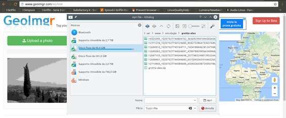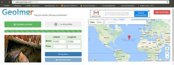 Uno dei servizi online che permettono di geotaggare fotografie si chiama Geoimgr : possiamo accedere direttamente al sito senza bisogno di registrazione. Per cominciare basta cliccare su Upload photo e selezionare la fotografia alla quale vogliamo aggiungere la posizione GPS fittizia. Se si è iscritti al sito diventa possibile selezionare più foto contemporaneamente.