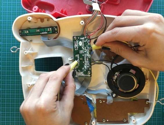 Per mettere in pratica la tecnica del circuit bending serve tanta pratica, molta fantasia e una buona conoscenza elettronica, necessaria per maneggiare correttamente e in sicurezza i componenti che verranno utilizzati e manipolati nei progetti. Esistono comunque delle linee guida generali che permettono di approcciarsi al bending su qualsiasi apparecchio sonoro a basso voltaggio. Innanzitutto, effettuiamo i nostri esperimenti solo su apparecchi alimentati a batteria, evitando di lavorare su giocattoli collegati alla corrente elettrica, anche se attraverso un alimentatore a basso voltaggio. Usiamo le dovute protezioni sia per gli occhi sia per le mani e, soprattutto, teniamo lontano acqua e altri liquidi dall’area di lavoro. Ed ora le preziose dritte di Valeria Vito per addentrarsi in questo affascinante mondo.