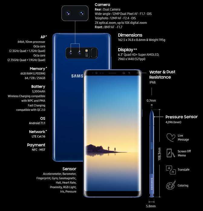 Samsung ha lanciato ufficialmente Samsung Galaxy Note 8, il suo nuovo dispositivo di punta dotato di pennino.