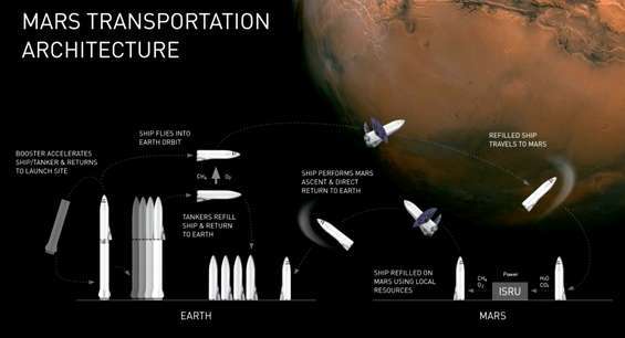 Musk vuole rendere “ridondante” l’attuale sistema di trasporto di SpaceX, integrando in un singolo apparato composito (booster e mezzo da trasporto) gli attuali componenti dei razzi Falcon 9, di Heavy e della capsula Dragon. Alla base del sistema ci sarà un nuovo razzo, ancora tutto da costruire e noto come BFR (cioè “Big Fucking Rocket”).