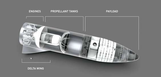 Il nuovo mega-razzo che sta progettando SpaceX è lungo 48 metri , ha una capacità di trasporto da 85 tonnellate (1.100 tonnellate di propellente) e con un compartimento da trasporto alto otto piani e dotato dello spazio sufficiente a ospitare 40 cabine (con due o tre persone ciascuna), un’ampia zona comune, storage centrale, una galleria e scudi contro le tempeste solari. I 31 motori Raptor alla base sono capaci di fornire una spinta da 5.400 tonnellate al decollo, spingendo una massa totale di 4.400 tonnellate nell’atmosfera.