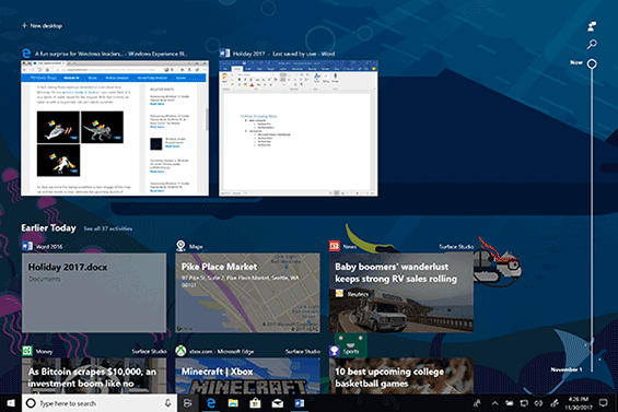 Timeline è la versione moderna (e limitata) di “Replay”, una funzionalità avanzata già vista un secolo fa in occasione della storia demo dello Xerox Alto: attraverso il pulsante di “visualizzazione attività” sulla barra delle applicazioni, gli utenti di Windows 10 possono consultare il flusso delle attività già effettuate sul sistema, i documenti aperti, le applicazioni/app avviate e tutto quanto.