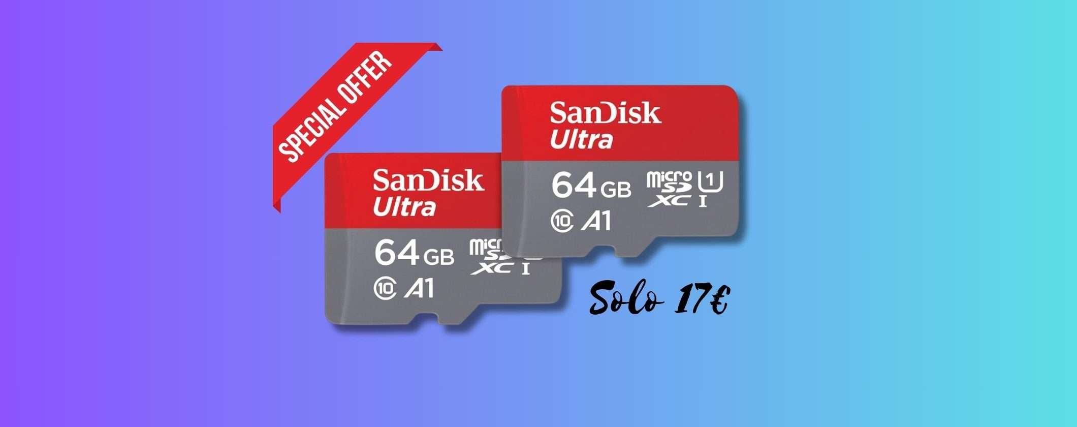 Sei pronto ad aumentare lo spazio di archiviazione dei tuoi dispositivi in un attimo? Acquista 2 MicroSD SanDisk 64GB a soli 17,99 euro, invece di 25,49 euro (prezzo consigliato per un pezzo). Essendo Plug & Play, basta solo inserirla nell’apposito slot ed è subito pronta all’utilizzo. Perfetta per smartphone Android, grazie alle prestazioni dell’app A1, è super indicata anche per fotocamere, videocamere e droni. Sbrigati perché l’offerta ha un limite di richieste che può esaurirsi velocemente.