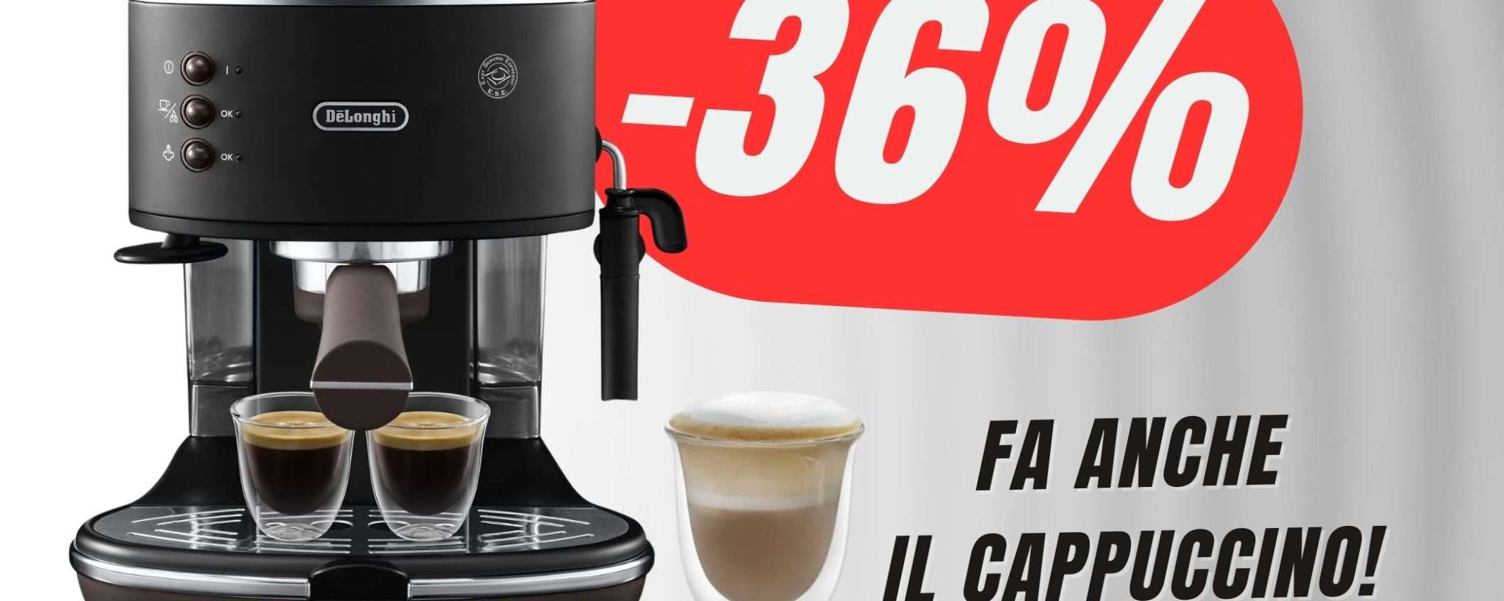 Il tuo angolo bar in cucina è abbastanza spoglio? E se ti dicessimo che puoi avere una vera e propria macchina da caffè vintage che prepara anche il cappuccino? Cioè, non proprio vintage, ma ci si avvicina! Parliamo di De’Longhi Icona Vintage che, grazie allo sconto del 36%, pagherai152,49€ al posto degli originari 239,99€!
