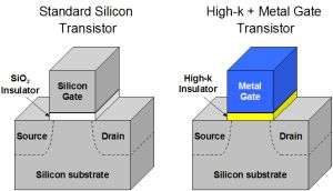 Pur conducendo le proprie ricerche in modo indipendente, Intel e IBM hanno messo a punto soluzioni tecnologiche non dissimili: entrambe utilizeranno infatti dei transistor con gate metallici , che prenderanno il posto dei classici gate in polisilicio, e un nuovo materiale isolante , con proprietà high-k (ad alta costante k, ossia capace di trattenere un maggior numero di cariche elettriche), in sostituzione del biossido di silicio. Per il momento nessuno dei due competitor ha svelato l’identità del suo nuovo materiale high-k.
