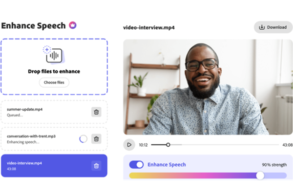 Uno dei primi strumenti di intelligenza artificiale da considerare quando si cerca un supporto rapido per eliminare i rumori di fondo è Adobe Podcast. Nello specifico, Adobe Podcast consente di registrare, modificare e migliorare file audio e video, rimuovere rumore ed eco dalle registrazioni vocali e persino controllare eventuali errori del microfono prima di registrare. Sicuramente però, uno tra i motivi per cui Adobe Podcast è tra i migliori strumenti per la rimozione del rumore di fondo è la sua facilità d’uso, che rende un lavoro altrimenti complesso pratico e veloce.