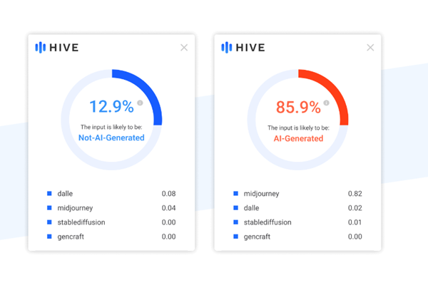 I numerosi strumenti per il rilevamento di immagini AI e testo permettono, seppur con funzionalità che possono variare, di individuare in pochi passaggi se un contenuto è stato generato o meno dall’intelligenza artificiale. In alcuni casi lo strumento presenta un risultato in percentuale e, in alcuni casi, saranno presenti anche altre informazioni più dettagliate. Tra questi strumenti, il primo è Hive Moderation, che permette di controllare un determinato contenuto, come le foto, direttamente dal sito sfruttando una prova gratuita e, eventualmente, sottoscrivendo un abbonamento a pagamento.