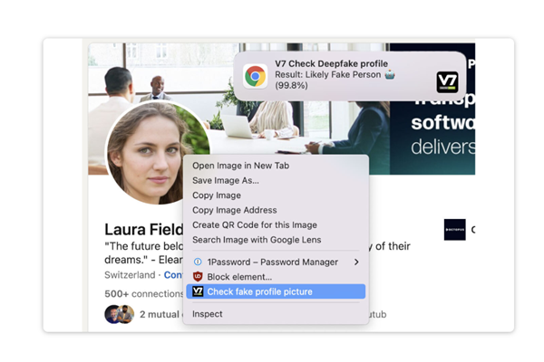 Ne sono la dimostrazione i social che nel tempo si sono sempre più riempiti di profili falsi, spesso per ingannare gli altri utenti, che utilizzano foto generate dall’intelligenza artificiale. Spesso, seppur si possa pensare che siano facilmente rintracciabili, non è così. Gli strumenti AI offrono generazioni di immagini sempre più sorprendenti e reali, per questo alcuni profili con le relative foto, anche di volti, possono essere molto convincenti, se pur fake. Fortunatamente, anche in questo ambito, è possibile fare una verifica veloce e pratica con strumenti in grado di individuare i deepfake con l’estensione V7 Fake Profile Detector. Basterà installare l’estensione per Google Crhome, procedere con il pulsante destro del mouse sull’immagine del profilo da controllare e selezionare “Controlla immagine del profilo falsa” dal menu a discesa. Dopodiché, grazie all’analisi dello strumento, verrà visualizzata una notifica per confermare se questa persona è reale o meno.