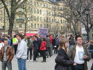 Domenica primo maggio a Stoccolma gli 800 si sono radunati (vedi foto in basso) al grido di “libera circolazione dei saperi, diritto alla copia e alla condivisione”, tutte divenute parole chiave di una protesta montante in diversi paesi. In questo caso il diritto alla copia è stato fisicamente “ribadito” mediante un massiccio scambio di supporti tra i partecipanti all’evento.