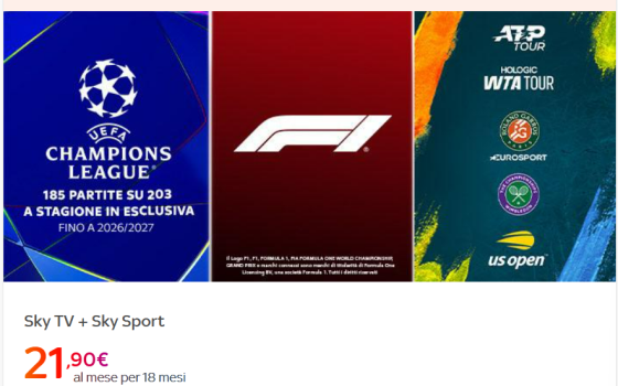 Attivando un abbonamento Sky, potrai vivere l’adrenalina degli eventi sportivi come il Roland Garros 2025, seguire i tuoi beniamini italiani in campo e goderti una programmazione sempre all’altezza delle tue passioni. Con Sky Sport e Sky Cinema, hai a disposizione centinaia di contenuti in esclusiva e la qualità dell’alta definizione che fa la differenza.