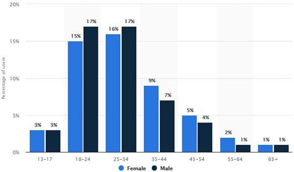 Bisogna inoltre fare i conti con la variabile età: oltre il 50% degli iscritti a Instagram rientra nel range 18-34 anni. Il fatto che la fascia più adulta sia meno propensa a entrare in contatto con collaboratori o clienti tramite il servizio ne è una logica conseguenza.