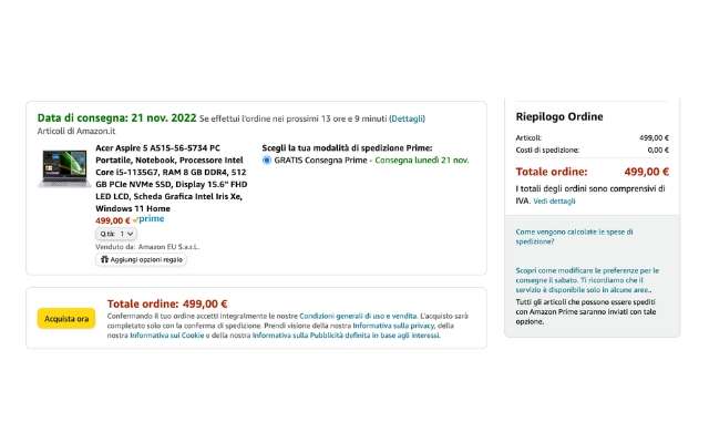 È esattamente questo il momento ideale per acquistare l’ottimo Acer Aspire 5. SuAmazonlo trovi in super offerta a soli 499 euro, invece di 749 euro. Pazzesco vero? Tra l’altro puoi acquistarlo subito e pagarlo un po’ alla volta grazie a Cofidis che, direttamente al check out, dividerà l’importo in comode rate a tasso zero.