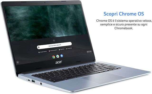 I Chromebook sono dei PC portatili pratici e veloci perfetti per chi ha esigenze di lavoro e produttività in mobilità con immediato accesso a tutti i propri dati grazie al supporto del cloud. Questo modello di Acer con 8GB di RAM è adesso in offerta su Amazon con uno sconto di 100 euro sul prezzo ufficiale. Già disponibile, grazie alla spedizione Prime potrai riceverlo domani.