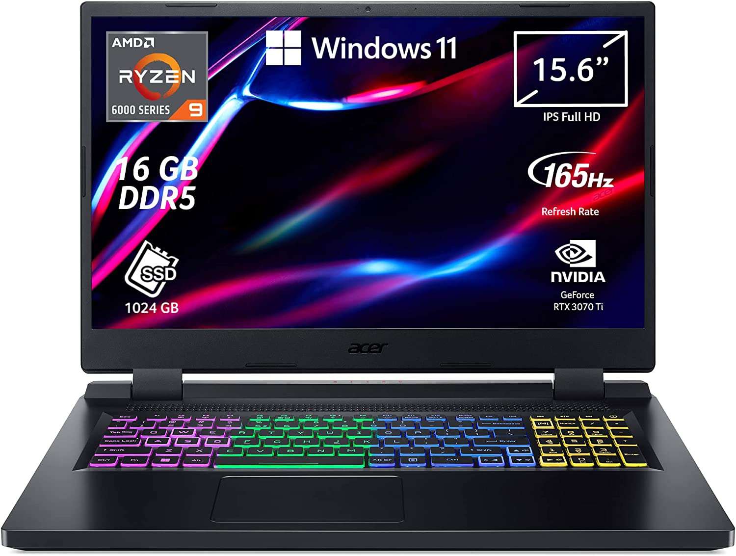 Acer propone diverse configurazioni del Nitro 5. Il modello in offerta su Amazon ha uno schermo da 15.6 pollici con risoluzione full HD IPS (1920×1080 pixel) a 165 Hz e integra il processore AMD Ryzen 9 6900HX. La dotazione hardware comprende inoltre 16 GB di RAM DDR5 espandibile fino a 32 GB, SSD PCIe da 1 TB e scheda video NVIDIA GeForce RTX 3070 Ti con ben 8 GB di memoria GDDR6. Questa scheda video presenta un’architettura NVIDIA 2a Gen RTX Ampere per offrire la grafica con ray-tracing più realistica e funzionalità di intelligenza artificiale all’avanguardia come NVIDIA DLSS.