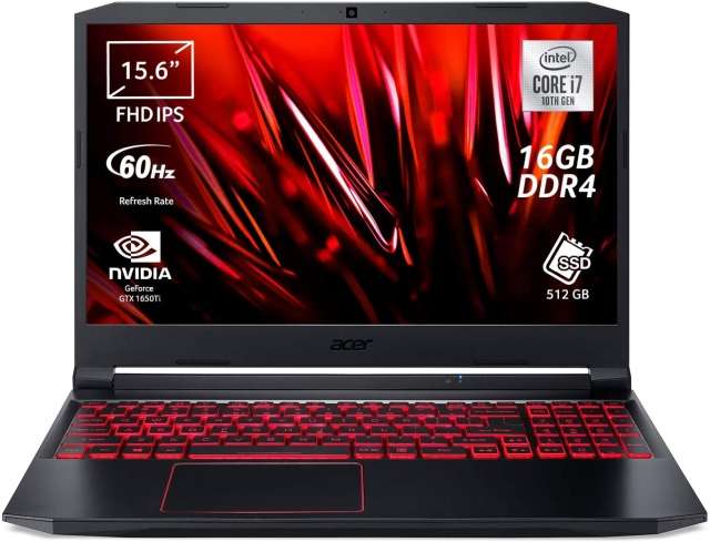 Acer propone diverse configurazioni del Nitro 5. Il modello in offerta su Amazon ha uno schermo da 15,6 pollici con risoluzione full HD (1920×1080 pixel) e integra il processore a sei core Intel Core i7-10750H con frequenza massima di 5 GHz. La dotazione hardware comprende inoltre 16 GB di RAM DDR4, SSD PCIe da 512 GB e scheda video NVIDIA GeForce GTX 1650 con 6 GB di memoria GDDR6.
