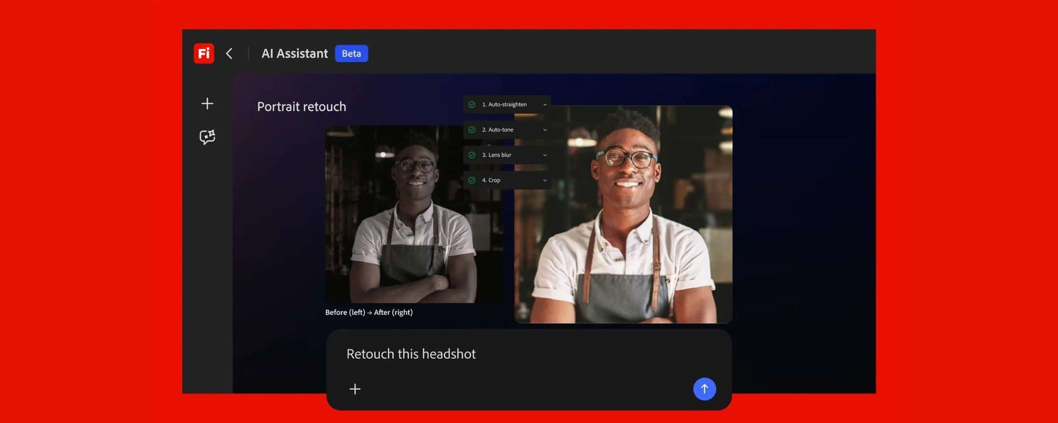 L’assistente è un’interfaccia conversazionale unificata, una chat dove si descrive cosa si vuole ottenere e l’AI esegue workflow complessi e multi-step utilizzando gli strumenti specifici di Firefly, Photoshop, Premiere, Lightroom, Express e Illustrator.