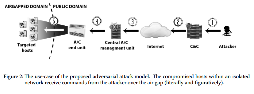 Ma non è tutto. Secondo un’altra ricerca dei medesimi studiosi, le reti air-gapped possono essere attaccate anche tramite i sistemi di monitoraggio degli impianti di condizionamento degli edifici (HVAC, heating ventilation and air conditioning).