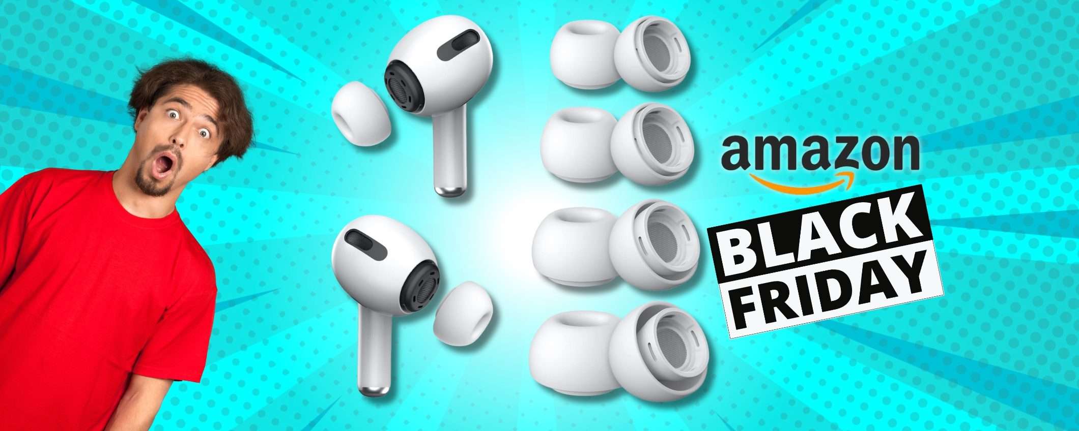 Collegati al volo su Amazon e acquista i tuoi gommini per AirPods Pro a soli 10€ con lo sconto del Black Friday in corso.
