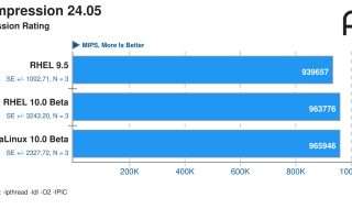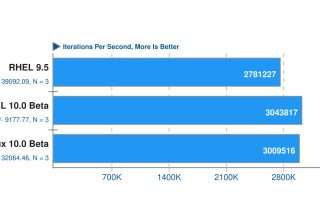AlmaLinux 10 beta mostra prestazioni superiori nei test effettuati con WireGuard, NAMD 3.0, Xcompatct3D, DaCapo, oltre che per quanto riguarda la compressione Zstd e 7Zip e il software grafico GraphicsMagick. Miglioramenti sostanziali sono emersi anche nelle prove con Cryptsetup, PyBench e PyPerformance, SVT-AV1 e V-RAY. Si tratta di miglioramenti per lo più simili a quelli ottenuti nei benchmark con RHEL 10 beta, con cui sono in linea anche le prestazioni generali.