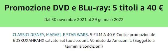 Prendi 5, paghi 4: è questa l’offerta Amazon sui DVD più desiderati di Natale, con tanti cartoon e tanto intrattenimento pronto a finire incartato tra i regali da mettere sotto l’albero. Potresti ad esempio regalare un film per ognuno dei tuoi amici, scegliendoli ad hoc come messaggio augurale e potendo sfruttare così l’offerta dell’acquisto in massa.