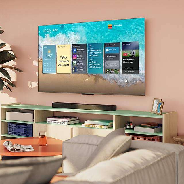 Il punto di forza è rappresentato dal pannello 4K QLED per offrire fino a 1.400 nit di luminosità e fino a 768 zone di dimming. C’è anche la compatibilità con la tecnologia HDR10+ Adaptive che esalta ogni dettaglio con colori più vivaci, neri più profondi e contrasti più ricchi. Integra poi il sistema far-field che consente di trovare app, scoprire programmi e film oltre a gestire la riproduzione utilizzando solo la propria voce.