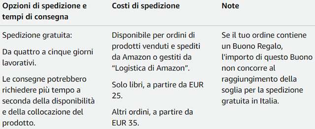 Non sappiamo con certezza quando sia accaduto, probabilmente nel mese di giugno. La conferma della modifica arriva dalla pagina del supporto ufficiale dedicata, da cui riportiamo lo specchietto allegato qui sotto che fa chiarezza sulla situazione attuale. Fanno eccezione i libri, per i quali la soglia continua a essere fissata in 25 euro.