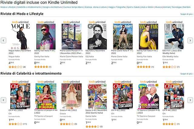 Riportiamo di seguito la lista completa delle riviste disponibili da oggi su Amazon.