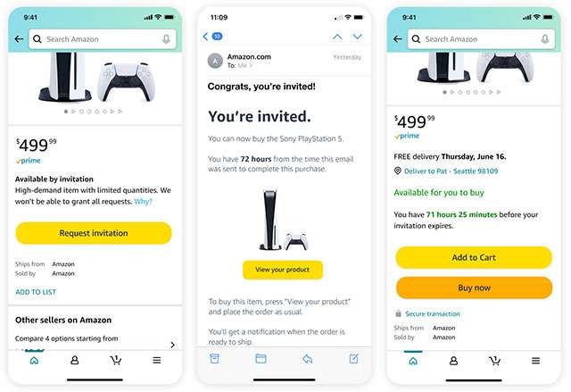 Il sistema permette ai clienti di inoltrare una richiesta di acquisto direttamente dalla pagina dell’articolo, senza alcuna spesa aggiuntiva. Tutti lo possono fare: non è necessario un abbonamento Prime. Amazon prenderà poi in carico quelle ricevute filtrando i bot, esaminando una serie di fattori come la cronologia delle attività e la data di iscrizione. Se tutto è nella norma, non appena possibile, parte un’email con le istruzioni per completare l’ordine e un conto alla rovescia per farlo.