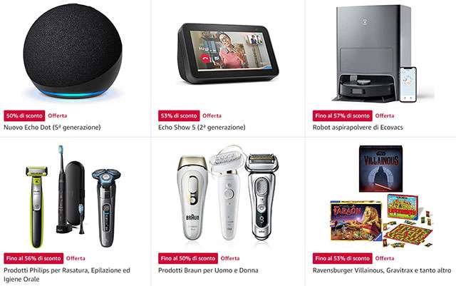 Ci sono ad esempio il display intelligente Echo Show 5 di seconda generazione a meno di metà prezzo, un monitor ultrawide LG a -47% e il router TP-Link Archer a -51%. Il consiglio è di segnare tra i preferiti la pagina dedicata all’iniziativa, così da poterci tornare ogni giorno e consultare l’elenco aggiornato. Questa la nostra Top 5 di oggi (che non include gli articoli già segnalati).