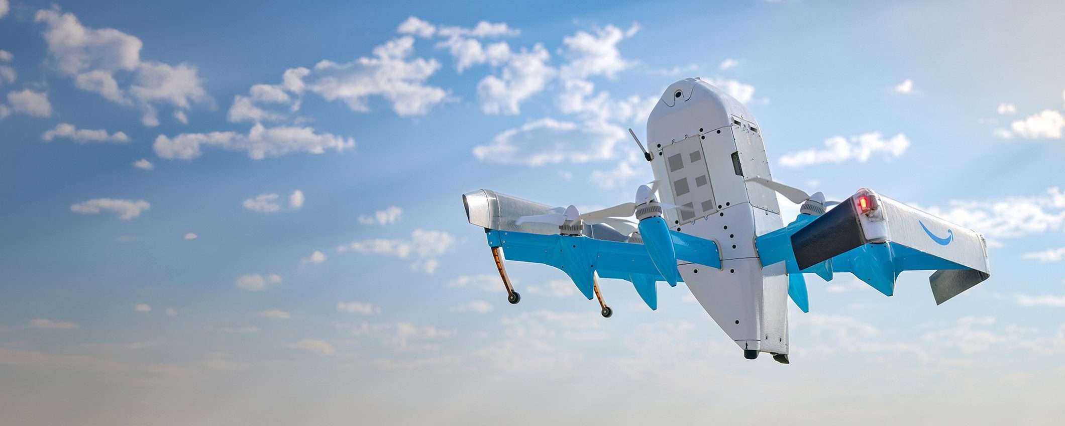 Accanto al magazzino principale sono stati creati dei siti ibridi (in parte centro di distribuzione, in parte stazione di consegna) che consentono di evadere, smistare e consegnare i prodotti più rapidamente. Per le consegne vengono utilizzati i nuovi droni MK30 che hanno ricevuto dalla FAA (Federal Aviation Administration) la licenza per il volo Beyond Visual Line of Sight, ovvero fuori dal range visivo dell’operatore. Il drone sfrutta una tecnologia che consente di rilevare ed evitare autonomamente gli ostacoli.