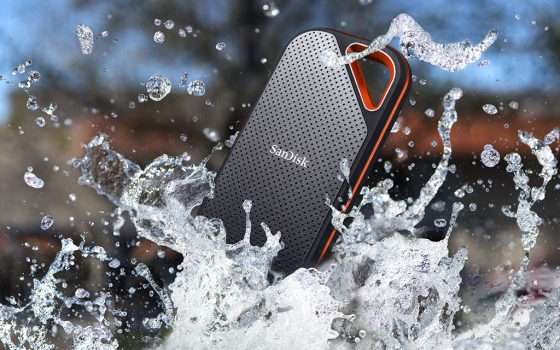 Passiamo adesso a un SSD esterno portatile davvero top di gamma. Stiamo parlando del SanDisk Extreme SSD da 1TB che presenta velocità incredibili: la tecnologia NVMe garantisce prestazioni con velocità di lettura fino a 1.050 MB/s e velocità di scrittura fino a 1.000 MB/s in un’unità di storage portatile ad alta capacità, perfetta per creare contenuti innovativi o girare riprese fantastiche. La struttura ha una resistenza alle cadute da massimo due metri e un indice di protezione IP55 contro acqua e polvere. Non manca la crittografia AEI 256 bit. Il tutto può essere vostro al prezzo di 139,99 euro invece di 260,99 euro grazie allo sconto del 46%.
