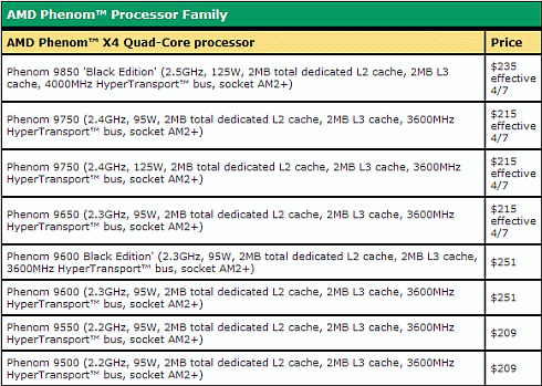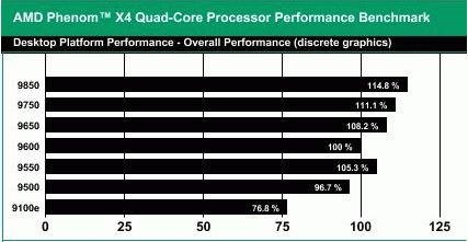 AMD definisce i nuovi Phenom X4 9000 come le sue più veloci CPU quad-core, ed afferma che queste “massimizzano le prestazioni nell’utilizzo di videogiochi e applicazioni multi-threaded”. Delle nuove CPU si distinguono il modello 9850 Black Edition , che offre agli hardcore gamer piena libertà di overclocking, e il modello 9100e , che grazie ad un assorbimento energetico massimo di 65 watt – confrontabile con i 125 watt del Black Edition ed i 95 watt delle versioni standard – si rivolge soprattutto ai PC da salotto, alle set-top box ed ai thin client.