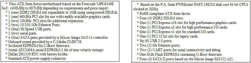 Come già si era appreso lo scorso mese, i due sistemi sono indirizzati a fasce di mercato completamente differenti: il più economico , dal prezzo di 489 dollari (monitor escluso), sembra disporre di una potenza di calcolo paragonabile a quella di un computer handheld; il più costoso , dal prezzo di 1.498 dollari , vanta invece una CPU dual-core da 2 GHz . Entrambi i processori sono basati sull’architettura PowerPC, ma mentre nel primo caso si tratta di un system on chip (SoC) MPC8349E di Freescale (ex divisione di Motorola), con clock compreso fra 400 e 667 MHz, nel secondo caso si tratta di un PWRficient PA6T-1682M da 2 GHz di P.A. Semi .