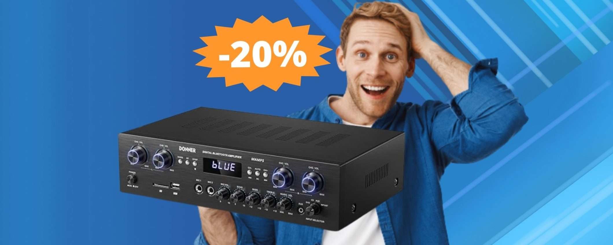 Se sei un appassionato di audio di alta qualità e stai cercando un amplificatore potente e versatile, non perdere l’occasione di acquistare l’amplificatore audio stereo Bluetooth Donner, uno dei più venduti su Amazon. Oggi, grazie alle offerte esclusive del Black Friday, puoi usufruire di uno sconto eccezionale del 20%, ma attenzione: l’offerta scade a mezzanotte. Approfitta subito di questa occasione e acquistalo al prezzo speciale di soli 135,99 euro.