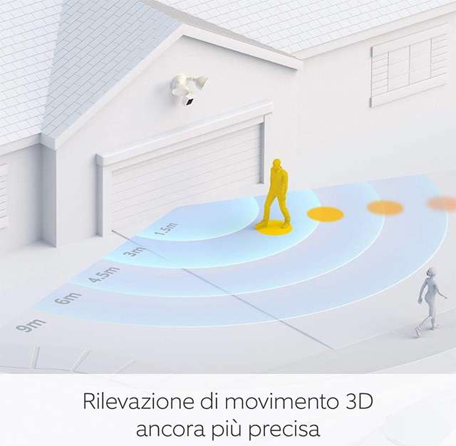 C’è la rilevazione del movimento 3D con definizione delle zone di privacy e vista dall’alto per tracciare con esattezza ogni spostamento. Non manca nemmeno una sirena da 110 dB che, quando serve, suona allontanando eventuali visitatori indesiderati. Il controllo avviene anche da remoto attraverso un’applicazione su smartphone e l’installazione a parete è semplice (staffa, viti e strumenti sono nella confezione) e richiede mediamente circa 45 minuti. Ovviamente, è progettata per resistere senza problemi agli agenti atmosferici. Fai un salto sulla scheda completa per conoscere tutte le altre informazioni relative alle specifiche tecniche e alle funzionalità integrate.