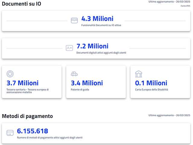 A un primo rapido sguardo, il lavoro svolto sembra andare nella giusta direzione, con la descrizione delle funzionalità e spunti per approfondirne i singoli aspetti. Qualcosa però manca. Anzi, non c’è più. Il riferimento è alla pagina “IO in numeri” della sezione “Visione e risultati”. Sono state aggiunte informazioni sui documenti caricati (attraverso il sistema IT-Wallet), ma rispetto al passato sono scomparsi, ad esempio le statistiche relative agli identity provider utilizzati per effettuare l’autenticazione con SPID.