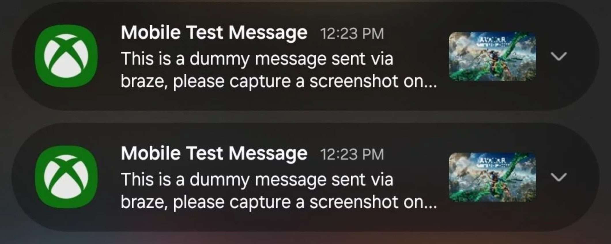 Gli utenti con l’app Xbox installata sullo smartphone si sono ritrovati sommersi da una raffica di notifiche identiche, tutte con lo stesso testo: “This is a dummy message sent via Braze, please capture a screenshot once you receive it. This should take you to the recently added gallery.” Un messaggio di test interno che, per qualche motivo, è sfuggito dall’ambiente di prova ed è finito sui telefoni di utenti reali.