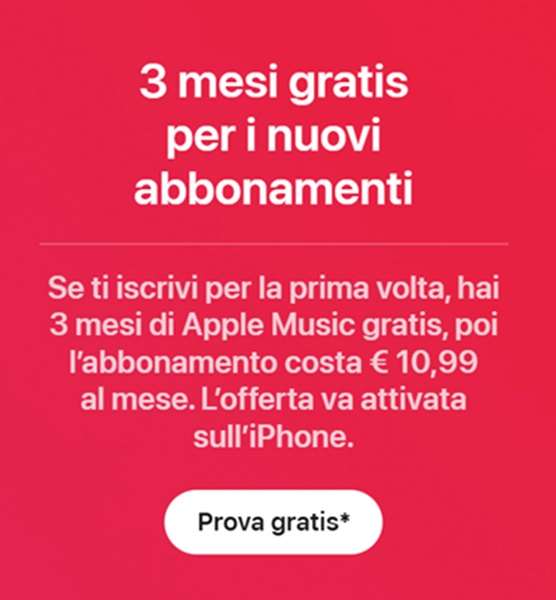 Il riscatto di 3 mesi gratuiti di Apple Music avviene completando l’iscrizione al servizio per la prima volta su iPhone. Dopo che ci si collega alla pagina raggiungibile tramite il link qui sotto: l’offerta dovrebbe comparire al momento dell’apertura della pagina. In caso contrario, è possibile recuperarla tramite la scheda Home. Infine, per completare l’attivazione basterà toccare su Accetta ora.