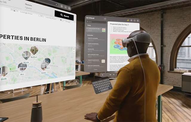 A detta di Apple, i pulsanti sulla tastiera virtuale sono sollevati visivamente dallo sfondo per imitare la comodità di premere i tasti fisici e la tastiera include anche feedback tramite effetti sonori spaziali per “compensare le informazioni tattili mancanti”.