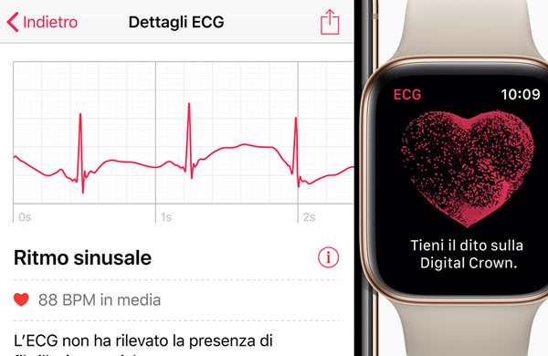Della caratteristica abbiamo parlato nei mesi scorsi, in occasione del lancio negli Stati Uniti, con due cardiologi: i dottori Simone Ventra e Salvatore Fonti. Il loro parere è che lo strumento può tornare utile per identificare i possibili sintomi di una fibrillazione atriale, generando in output l’esito dell’elettrocardiogramma da sottoporre poi eventualmente al medico. Non può però sostituire un macchinario professionale per l’ECG, per un semplice motivo: dispone di un solo elettrodo (la lettura avviene toccando per 30 secondi la Digital Crown) e non dodici come invece necessario per un quadro completo dell’attività cardiaca.