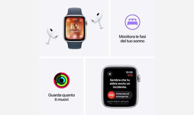 Oltre alla promozione su iPhone 15 ora attiva su Amazon, tra le pagine dello stesso portale potrai trovare anche lo smartwatch Apple Watch SE di seconda generazione al 19% in meno. Questa offerta porta l’orologio smart a un prezzo molto vicino al minimo storico; ergo, non dovresti lasciarti scappare questa occasione d’oro e completare la combinazione smartphone-smartwatch della Mela con un unico colpaccio!